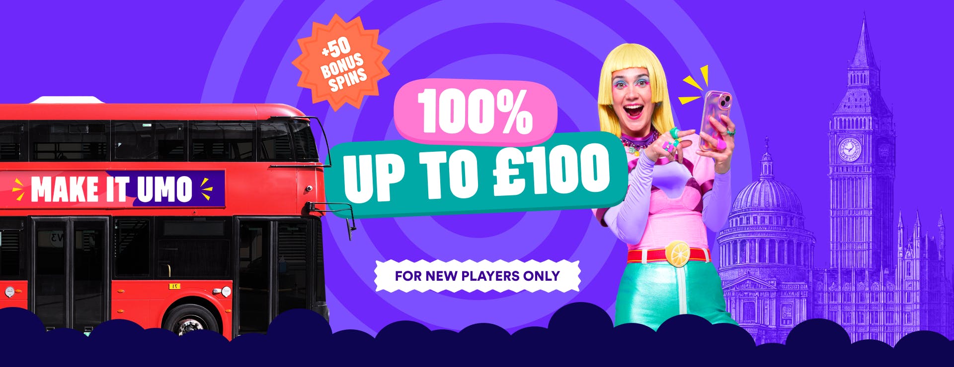 18+. New players. Opt-in required. 50 Bonus Spins on “Big Bass Bonanza” at 10p per spin and 100% Deposit Bonus up to £100 on first deposit (payment method and play restrictions apply). Min. deposit £20. 30x wagering for Bonus Spins and Deposit Bonus (game weighting applies). Max. £5/spin or £0.50/line. 30 days expiry. Play responsibly • BeGambleAware.org • Terms and conditions apply