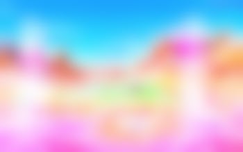 The first screen shows a Candyland where you can see pink waves of cotton candy and small chocolate candies scattered on the ground. In the background are an ice cream cone and chocolate cake.