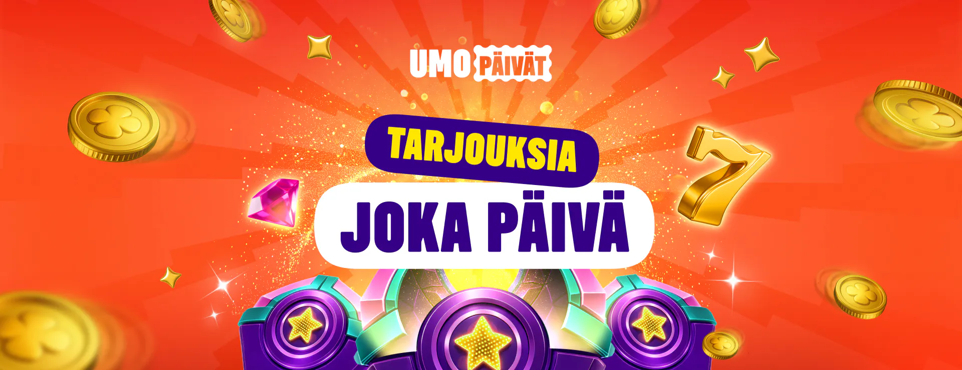 Ei hätää, emme ole suinkaan unohtaneet uskollisia pelaajiamme, sillä hauskuus ei lopu tervetuliaistarjoukseen. Löydät Kampanjat-osiostamme kaikki ajankohtaiset tarjoukset ja kasinobonukset. Pysy myös kartalla huikeista UMOpäivistämme, jolloin palkintojen ja etujen tuloa ei yksinkertaisesti voi estää!